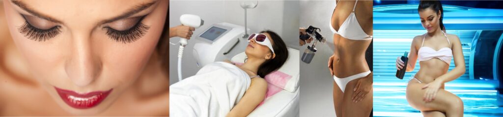 Tratamientos diversos como los diferentes sistemas de depilación láser diodo, ipl electrolisis, cera, roll-on, hindú con hilos y otros, bronceados solárium y spray dha, Técnicas avanzadas referente a pestañas como el lifting, rizado, teñido y las extensiones.